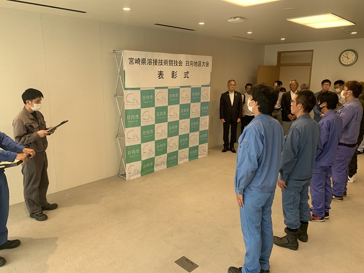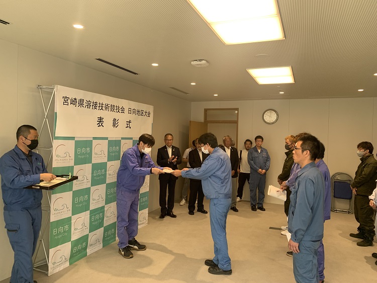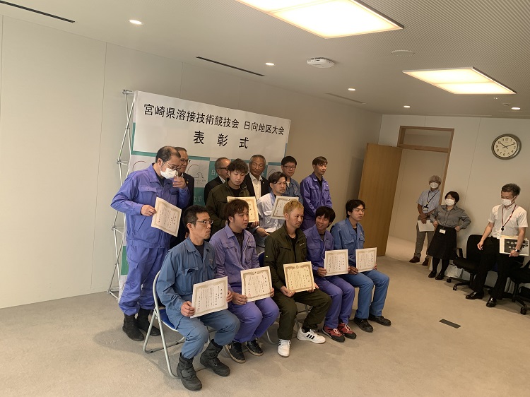令和5年7月8日に行われた「令和5年度宮崎県溶接技術競技会 日向地区大会」にて、前々回の記事にて紹介しました初参加の「笑顔の怪しい彼」が表彰されました。業務ではほぼ行わない溶接ですが今回なんでもやってみようと練習に励んで臨みました。